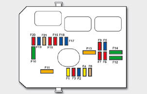 The fusebox is placed in the engine compartment near the battery (left-hand side).